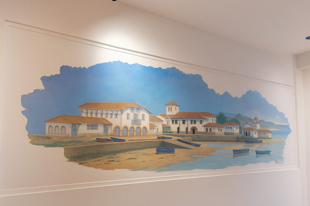 En nuestro espacio de trabajo hay un mural que representa nuestro barrio, el puerto y el mar que nos vio crecer.
